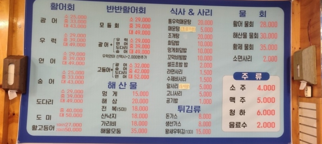 그 곳에는 계절별 회를 추천해주신답니다ㅎㅎㅎㅎ